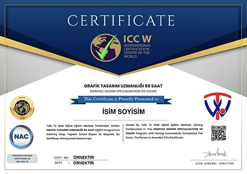 Eğitim programının sonunda katılımcılar 169 ülkede geçerli olan uluslararası sertifika almaya hak kazanırlar. Sertifikalar İngilizce ve Türkçe dilinde düzenlenir. Sertifikalarınız Linkedin ve sosyal medya mecraları ile uyumludur ve dijitalde görüntülenip paylaşılabilir. Üzerindeki QR kod ile Ulusal Sertifika Merkezinde sorgulanıp doğrulanabilir.